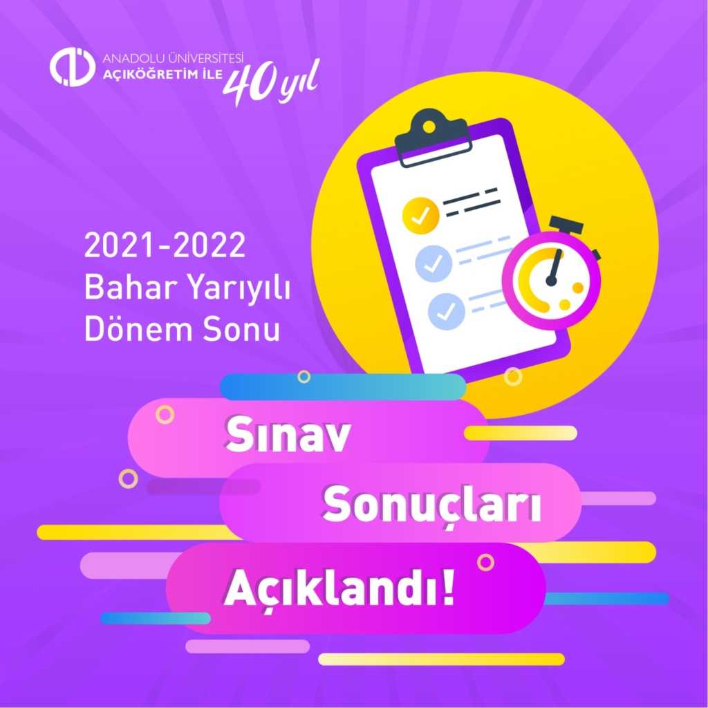 İtirazlar tamamlandıktan sonra sınav sonuçları okuma işlemi devam etmektedir. Tahmini olarak 2022 Bahar Dönemi Final Sınavı Sonuçları 2-3 Haziran 2022 tarihlerinde açıklanması beklenmektedir.