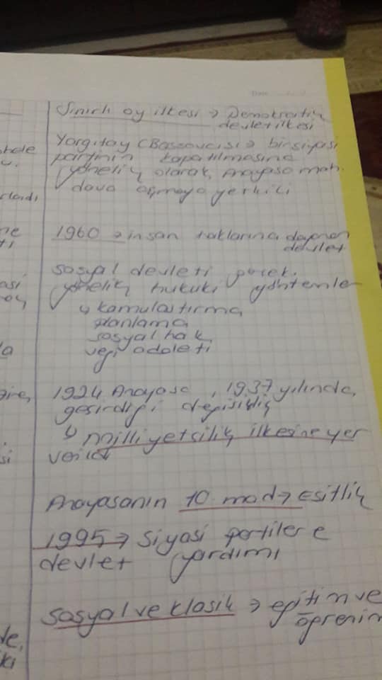 Anayasa Hukuku Dersine çalışan öğrenciler, çalışma esnasında notlar hazırlamış ve bu notları sınav öncesi tekrarlamış, sonucunda ise başarılı olmuşlar. Bu hazırladığı Anayasa Hukuku – Ünite 1-4 Ders Notlarının fotoğrafını çekerek sizlerle paylaşan arkadaşlara teşekkür ediyoruz.