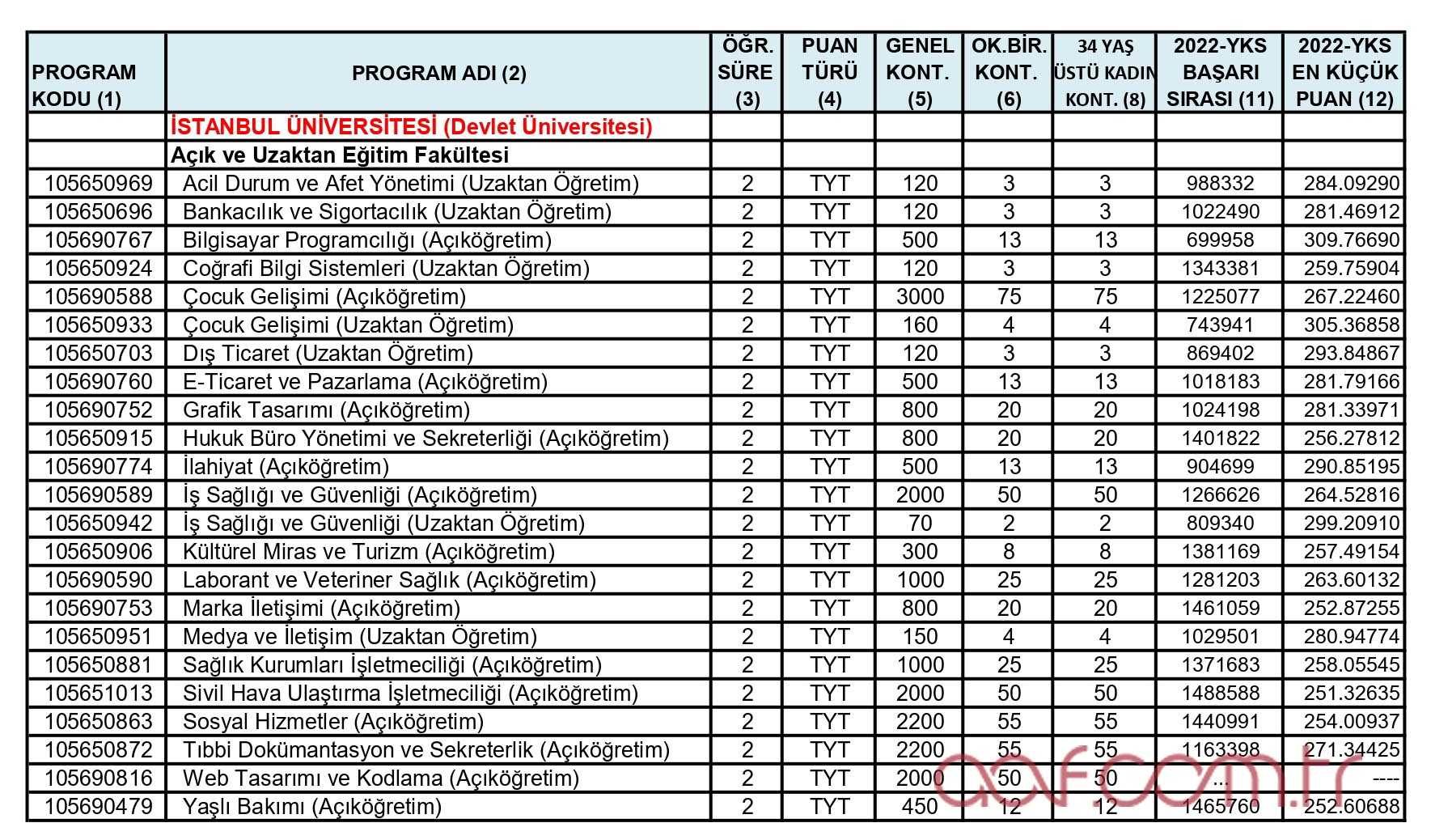 2021 – 2022 AÖF Taban Puanları İçin Tıklayınız.