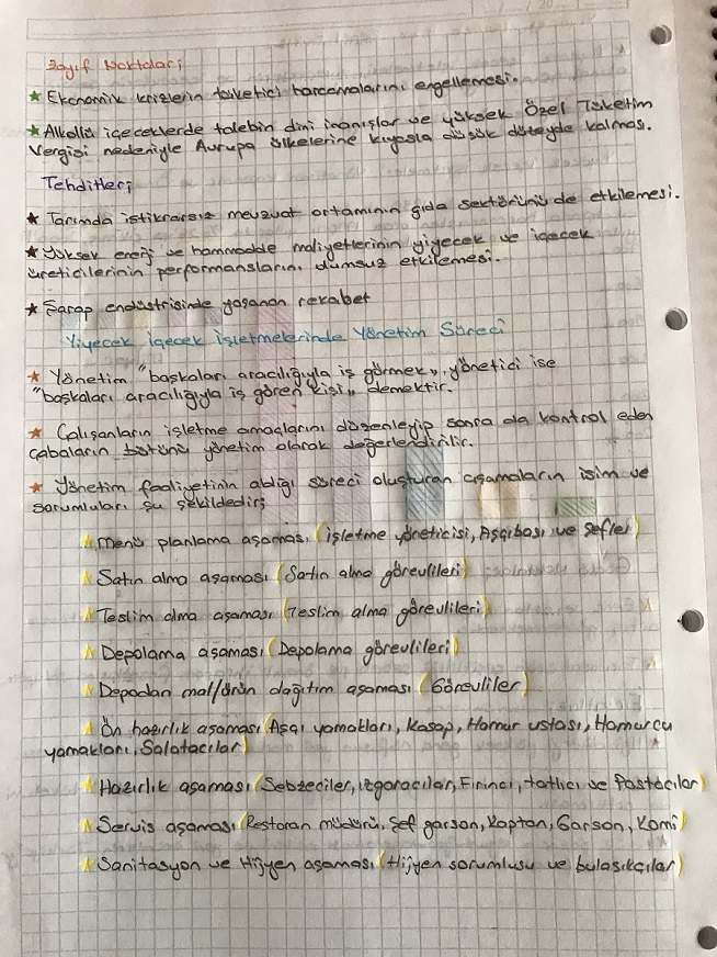 Yiyecek İçecek Yönetimi Dersine çalışan öğrenciler, çalışma esnasında notlar hazırlamış ve bu notları sınav öncesi tekrarlamış, sonucunda ise başarılı olmuşlar. Bu hazırladığı “Yiyecek İçecek Yönetimi Ünite 1 – Yiyecek İçecek İşletmelerine Genel Bakış” Ders Notlarının fotoğrafını çekerek sizlerle paylaşan arkadaşlara teşekkür ediyoruz.